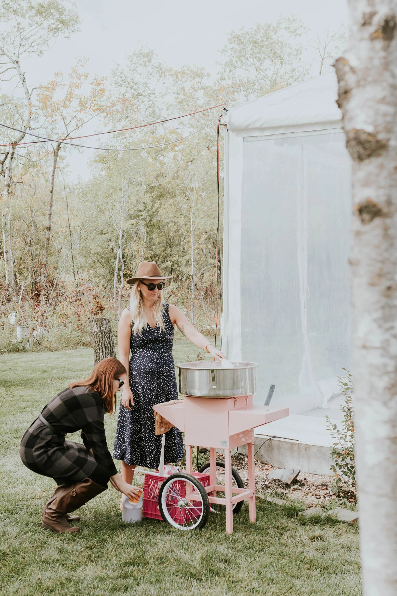 Cotton candy machine and candy floss, silverware, cocktail tables Belayre Rentals @belayrerentals